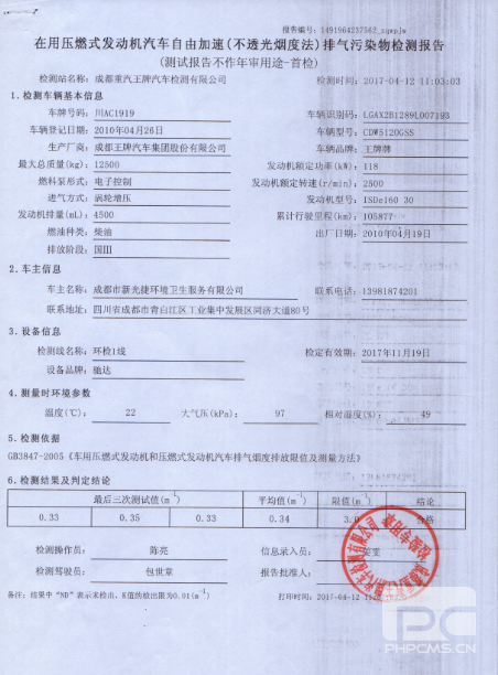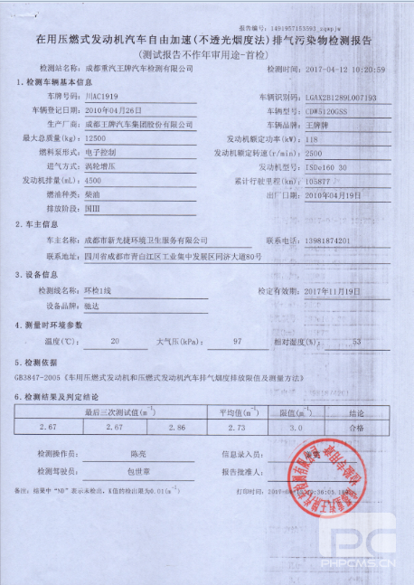 车辆原排:烟度值>2.5m-1,60%工况下排温<250℃,时速<50Kw/h,发动机无烧机油及窜缸现象。